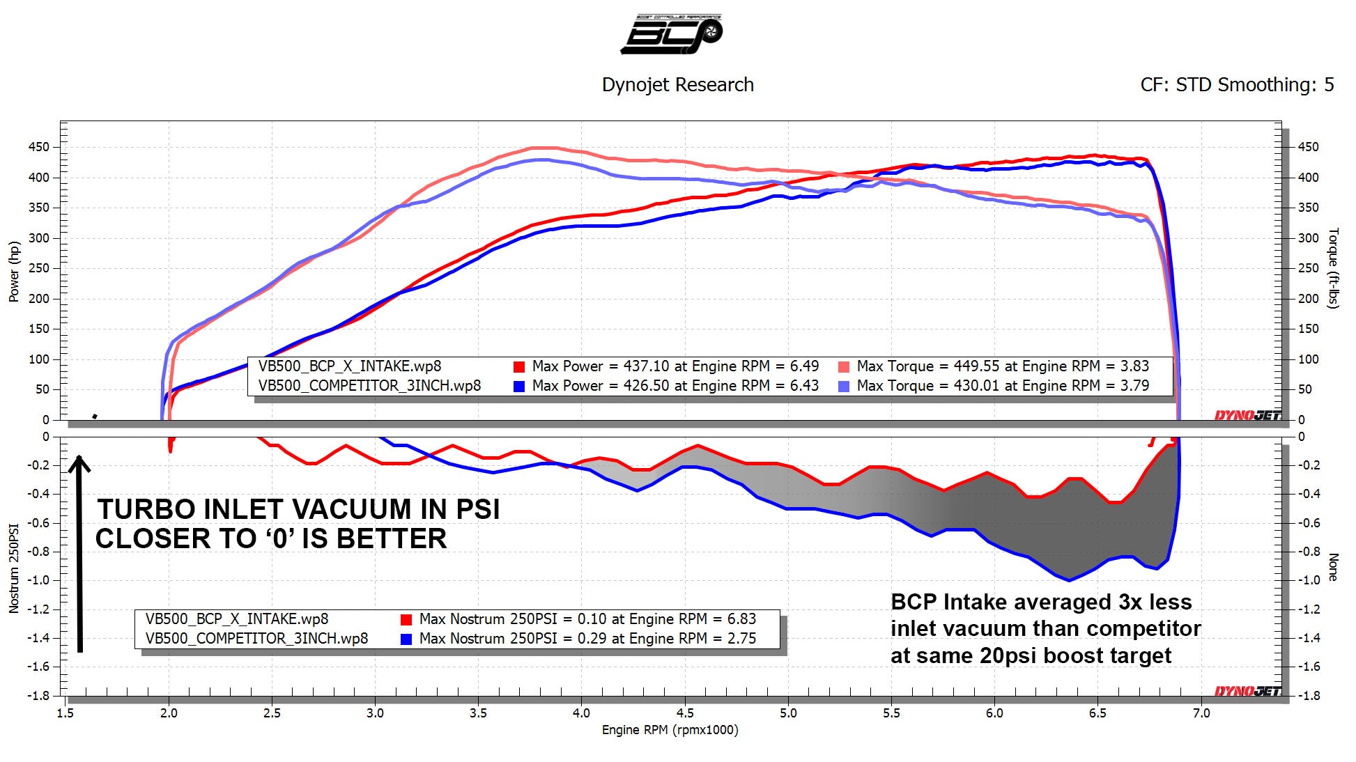 Pair our VB500 with our BCP X Series Intake for the ultimate power setup, capable of making over 500WHP.